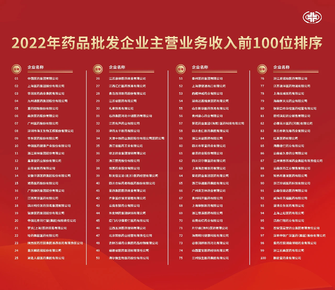 藥品流通行業批發、零售企業百強榜單重磅發布